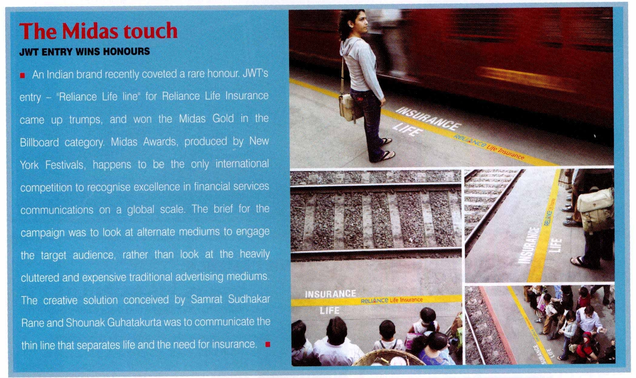 It reminded me of the work I had seen for Reliance Life Insurance. By placing the words correctly on the yellow line, the message did more than just the branding.