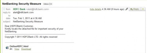 This morning I had a HDFC NetBanking Security alert email in my Inbox. For a moment I thought that my account login may have been tampered with and this could be an alert for that. So I looked into it immediately. What followed is interesting and rather worrisome.