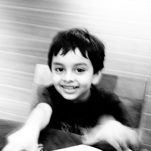 Naughty cousin who wouldn’t sit steady for a shot and so this came out blurred. But when I did a B&W transfer, I seemed to like the effect.